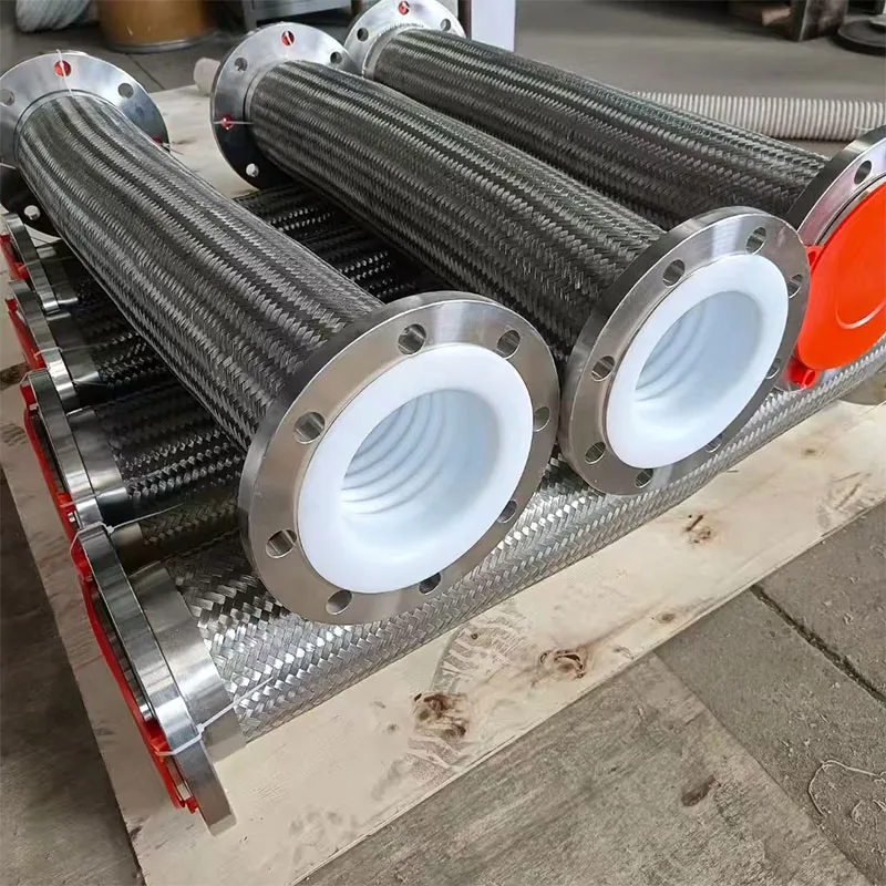 Металлические шланги с PTFE-покрытием представляют собой композитные трубопроводные фитинги, состоящие из внешнего слоя металлического шланга и внутреннего покрытия из PTFE. Они сочетают в себе прочность металла и коррозионную стойкость PTFE, благодаря чему широко используются в промышленных системах транспортировки жидкостей. Их основные функции включают компенсацию вибрации, смещения и теплового расширения и сжатия труб, а также соответствие требованиям безопасности при транспортировке высококоррозионных сред.